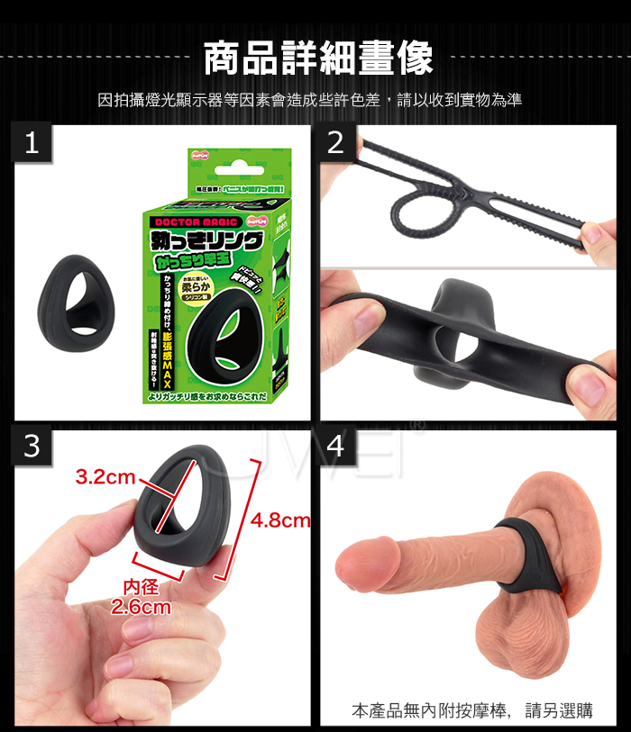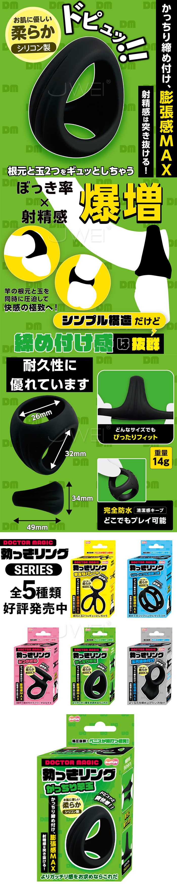 竿と玉を締め付けて、膨張感と持続力をアップするコックリングです。 【がっちり竿玉】は竿と玉の付け根を同時に締め付けるシンプルな王道タイプ。 簡単に装着でき、しっかりと締め上げ、竿を支えます。 2点同時締め付けで普段とは段違いの硬さ、持続力、射出量をサポート。 一度経験したら手放せなくなるお手軽パワーアップ商品です。シリコン製で様々なサイズに対応可能。 防水仕様で洗浄も簡単です。 ■箱サイズ:145×73×50mm ■商品サイズ:49×34mm ■商品重量:14g