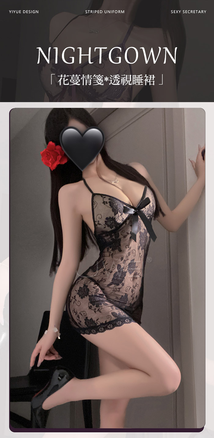 ►您現在的位置:首頁>枕邊禁語.純欲花蔓薄紗透視睡裙-黑色【睡裙+T褲】