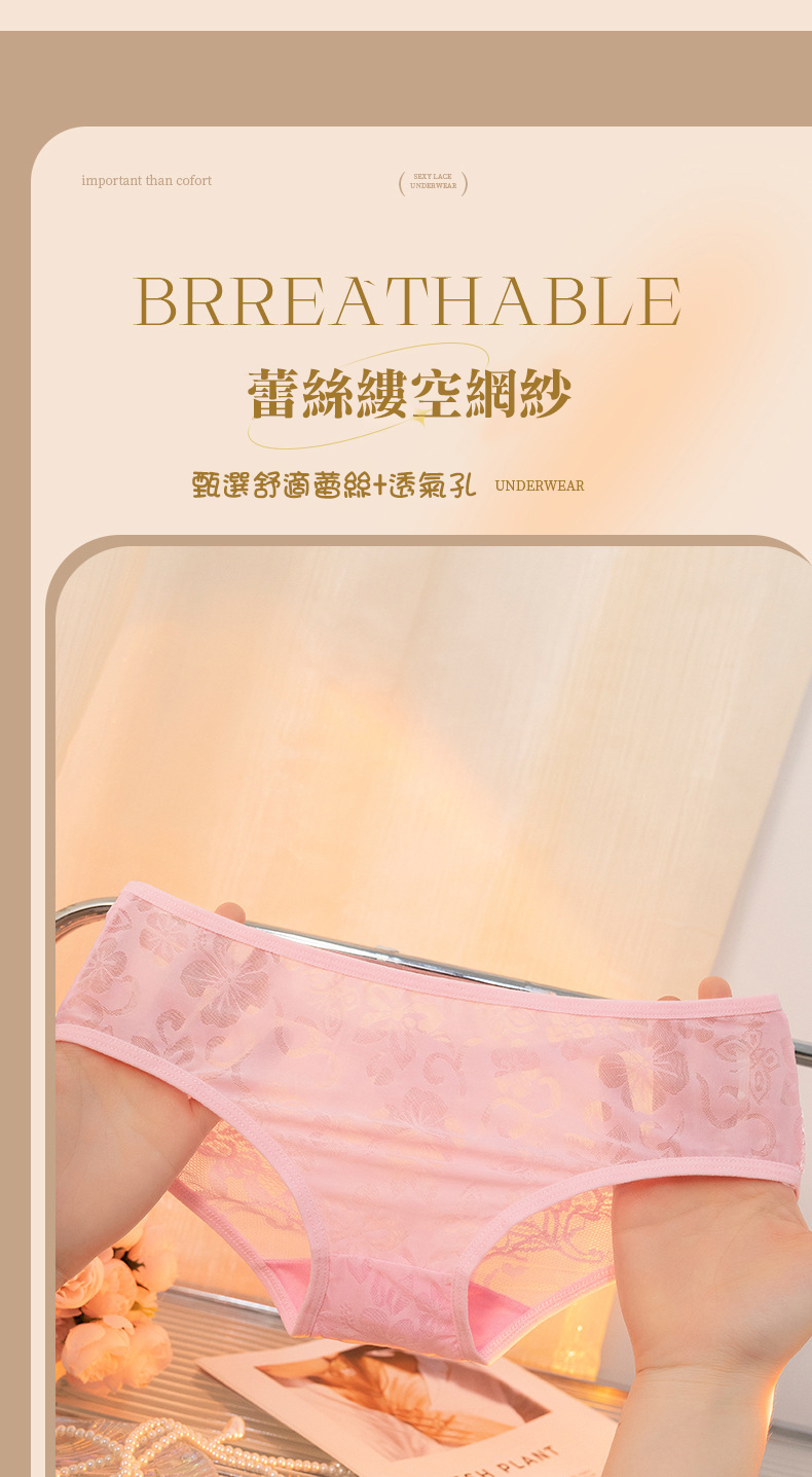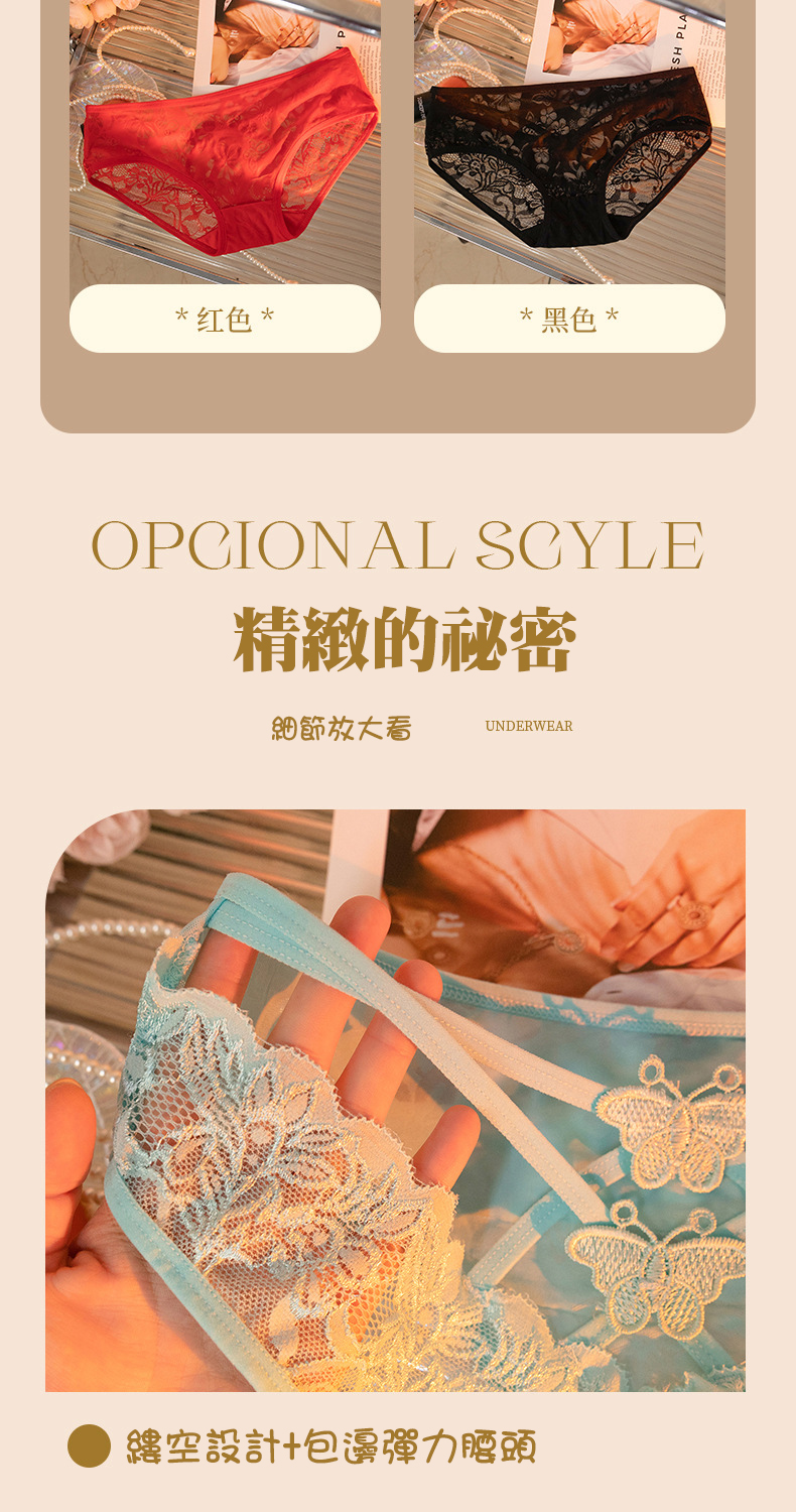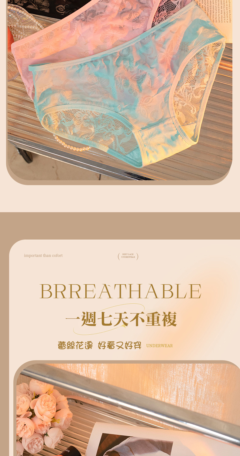 新款性感屁股蛋 半透蕾絲8色性感內褲 每天都讓妳穿不一樣的內褲, 嬌小體型到最大65kg都可以穿著 純棉底檔 透氣呼吸 呵護您的私密處! 8種顏色可挑選、舒適又不失性感 型號:8216 材質:80%棉綸+20%安綸 底檔:100%純棉 尺寸:M碼(38~50KG) 特色:提花、透氣、性感