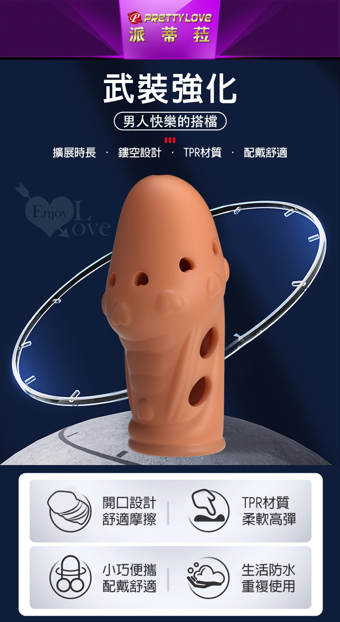 派蒂菈 ‧ BOOKER 布克 鏤空/顆粒/隱身/持久/武裝強化老二造型套 - 頭部出精口設計﹝棕色﹞