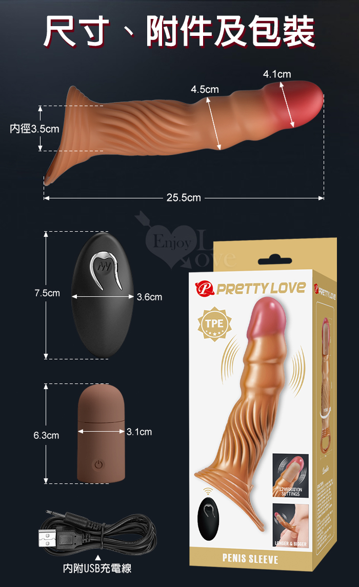 派蒂菈 ‧ LESLIE 萊斯利 無線遙控12變頻強勁內震動加長增粗老二束精套﹝擴展男性尺寸/男女共振享受/USB充電﹞