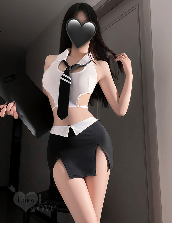 ►您現在的位置:首頁>秘書角色扮演服!細帶露腰短上衣撞色雙開衩包臀裙四件式套裝