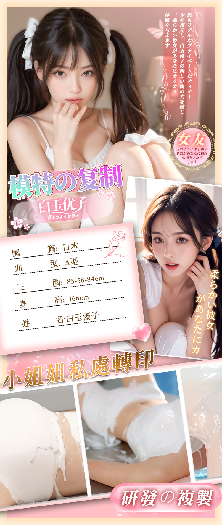 擬真肌膚紋理轉印,柔韌軀體任意把玩,肥厚名器包裹體驗。