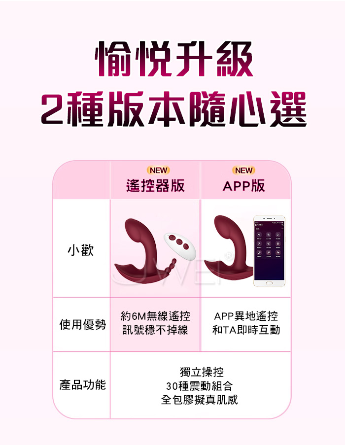 ►您現在的位置:首頁>小歡.10頻內外雙馬達強震貼合隱形 APP智能遠控穿戴按摩器【APP款-酒紅】