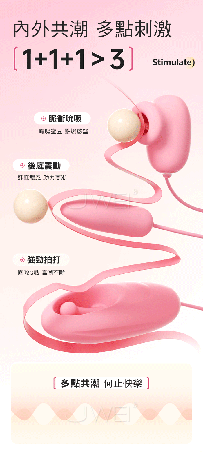 ►您現在的位置:首頁>謎姬 MizzZee.悅潮.18x18頻脈衝吮吸 摳震拍打 內外共潮情趣跳蛋【USB直插-三跳蛋】