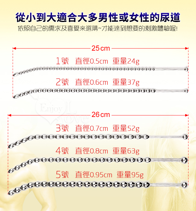 另類玩虐刺激 ‧ 不銹鋼尿道馬眼連珠彎弧 擴張入侵長棒 - 5號﹝直徑0.95公分/全長26公分﹞