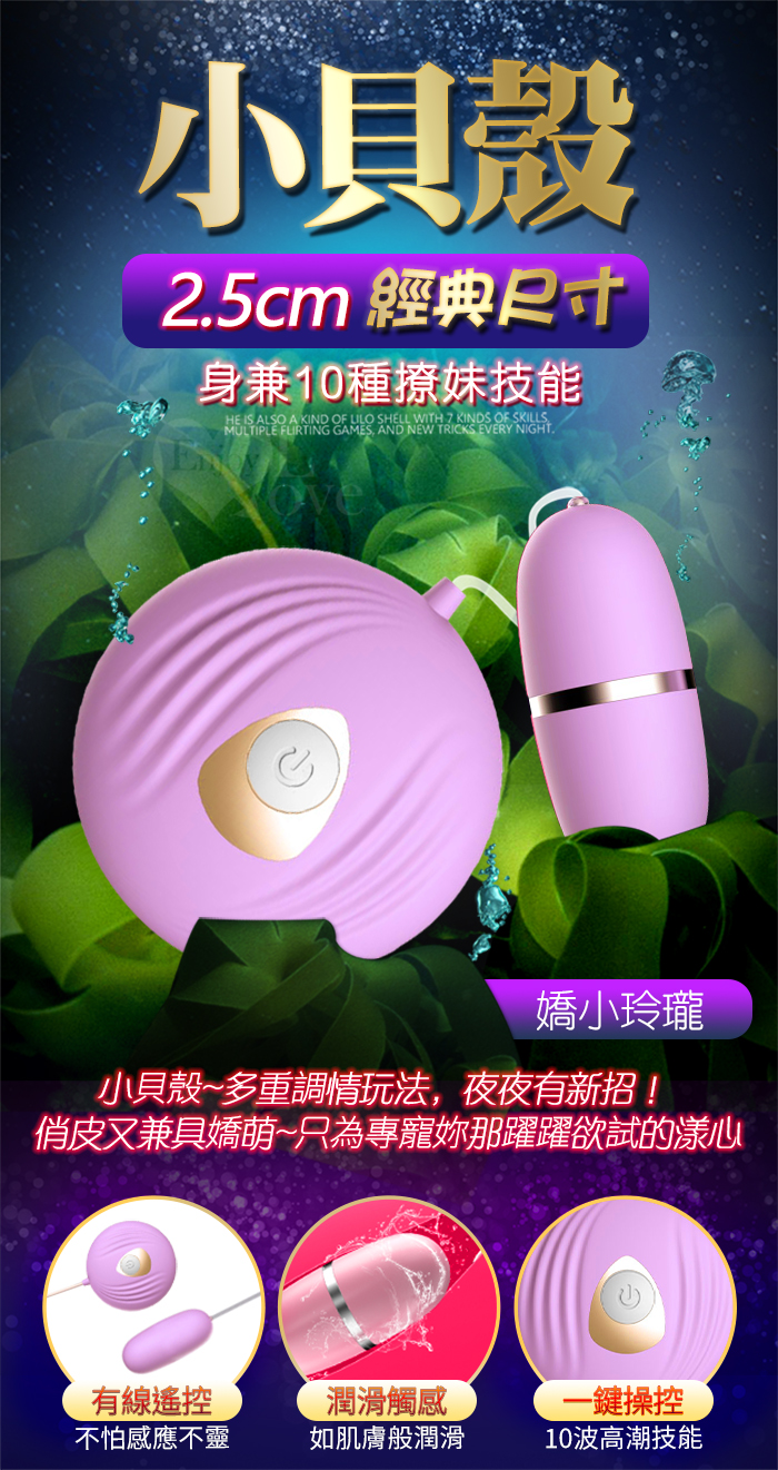 ►您現在的位置:首頁>LILO 來樂 ‧ 小貝殼 10段震動模式激震跳蛋-S豪華版 紫