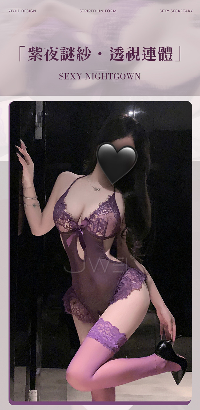 | 深夜謎紗.純欲睫毛蕾絲網紗包裹掛脖繫帶美背開襠連體衣【黑色】