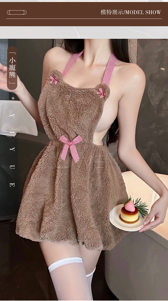 | 小熊女僕.呆萌酥甜蝴蝶結繫帶小熊絨毛掛脖裙