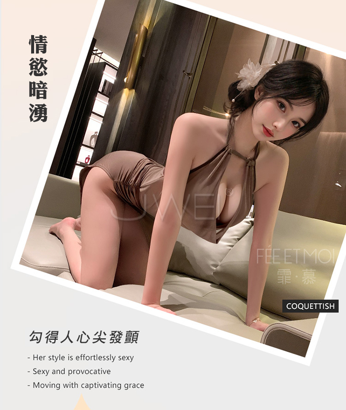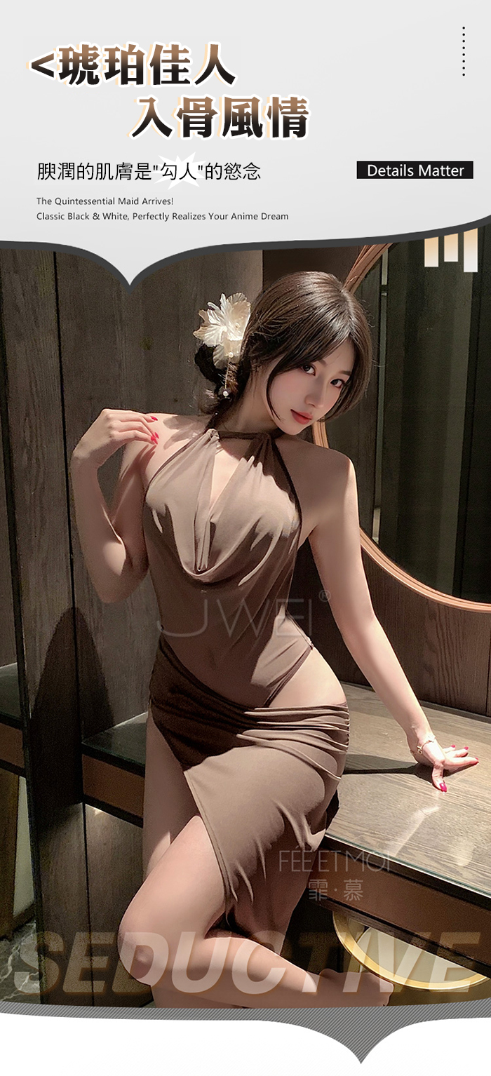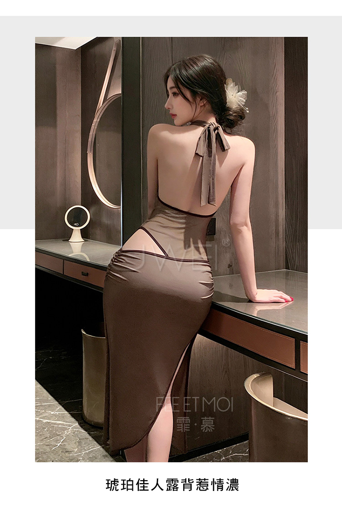 | 尤物魅骨.深V性感露溝美背分割飄逸長裙襬旗袍【連身裙+袖子*2+T褲】