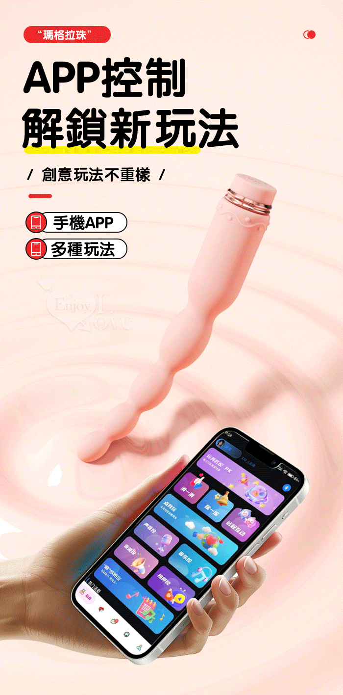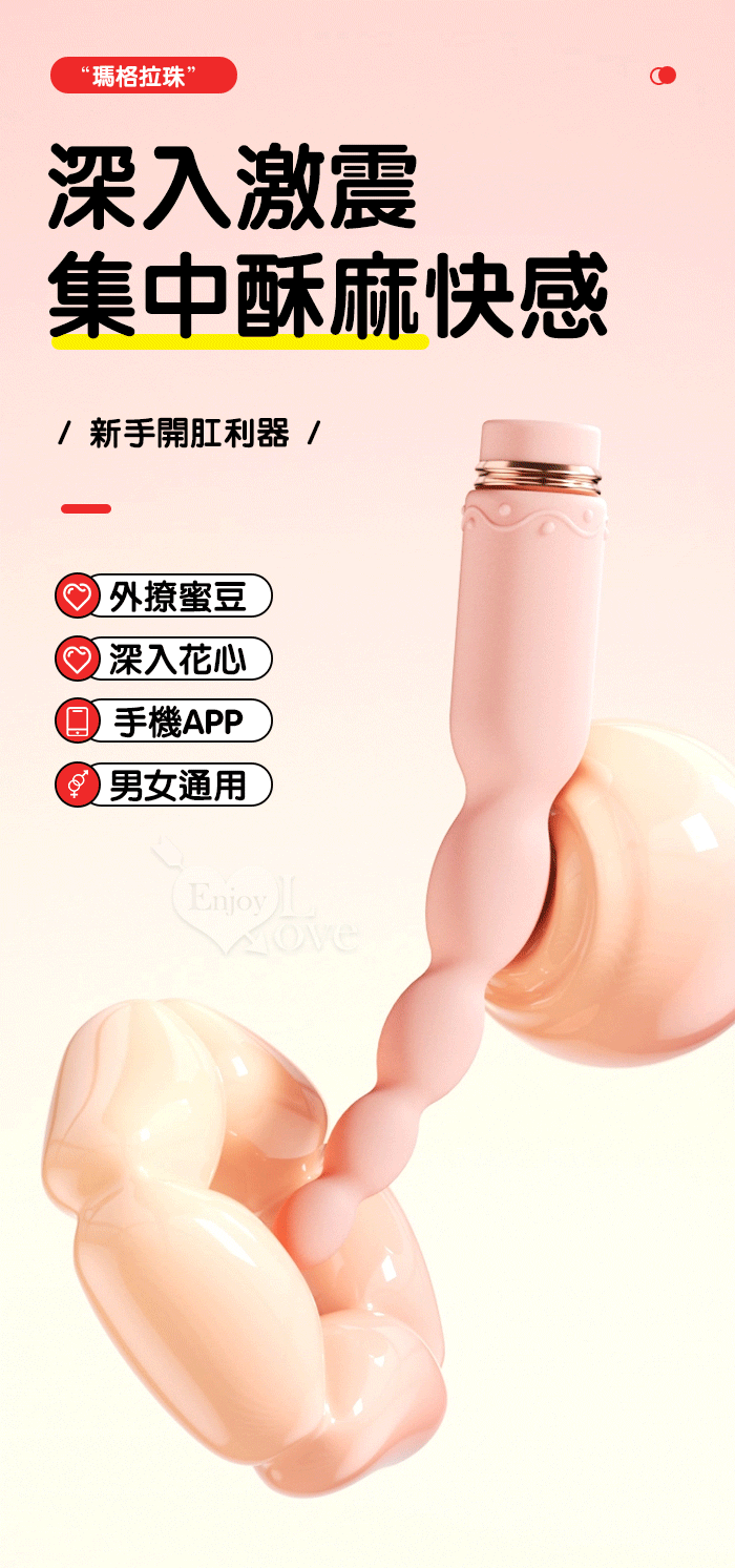 | ROSELEX 新手玩家 瑪格連環拉珠按摩棒~10頻強勁震動/細小易入/男女通用/可手機APP遙控﹝具兩種操控模式﹞粉