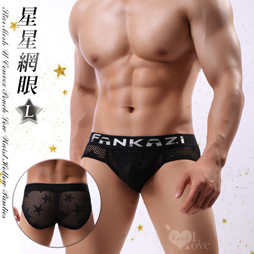 《 Enjoy Love 》星星網眼U凸囊袋低腰鏤空內褲 - 黑﹝XL﹞