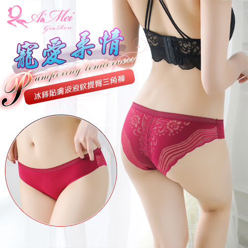 寵愛柔情!冰絲貼膚波浪紋提臀低腰三角褲﹝酒紅﹞