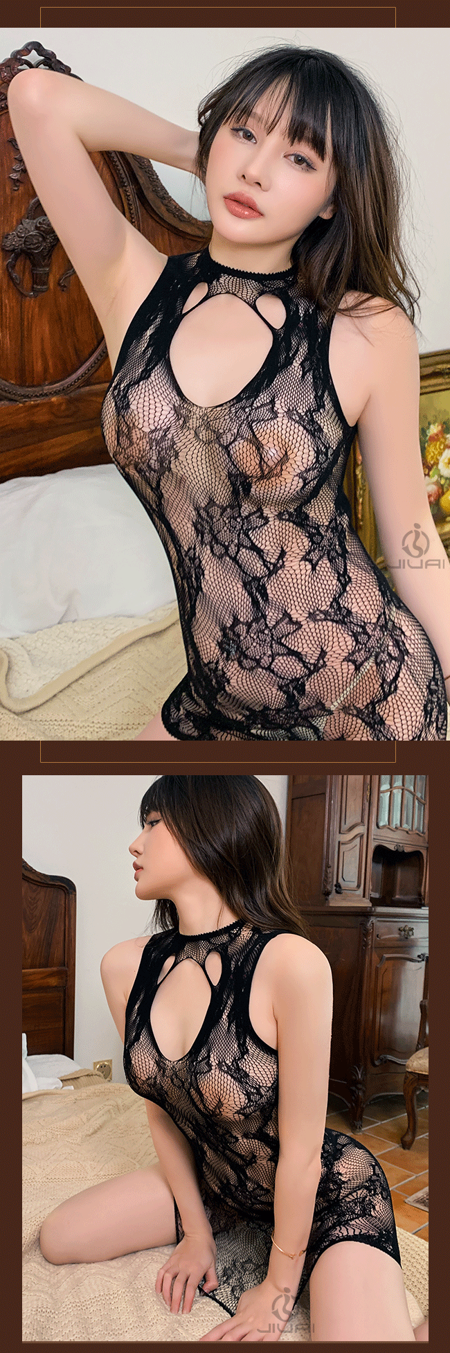 ►您現在的位置:首頁>《JIUAI》極性貓裝!裸肌花卉蕾絲露背風情漁網連身裙