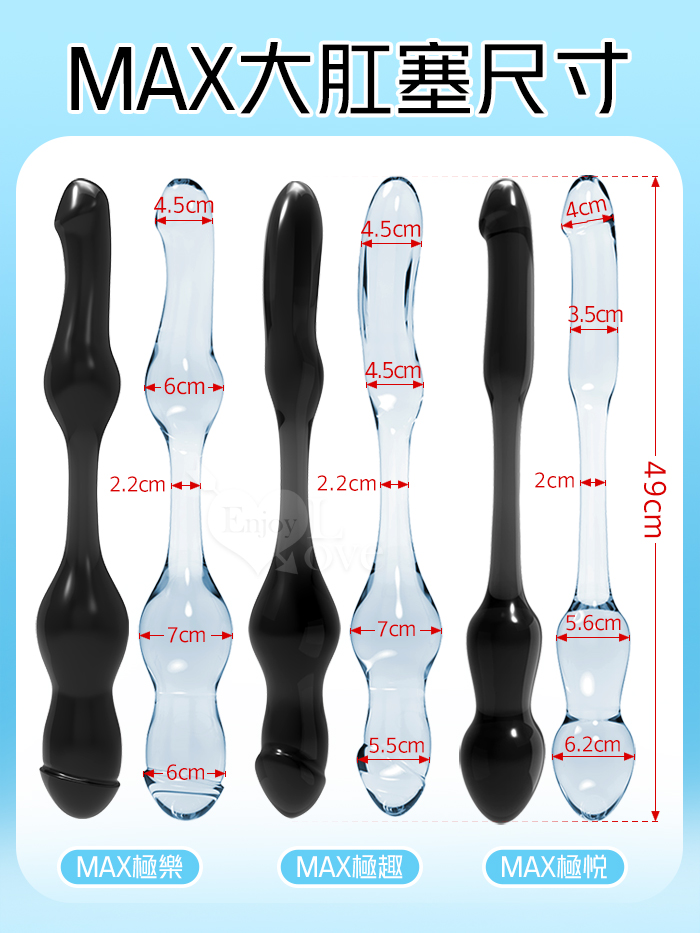 取悅 ‧ MAX極樂!XXXL巨大型雙頭水晶按摩棒-前陰後庭/男女皆適用﹝透明黑﹞