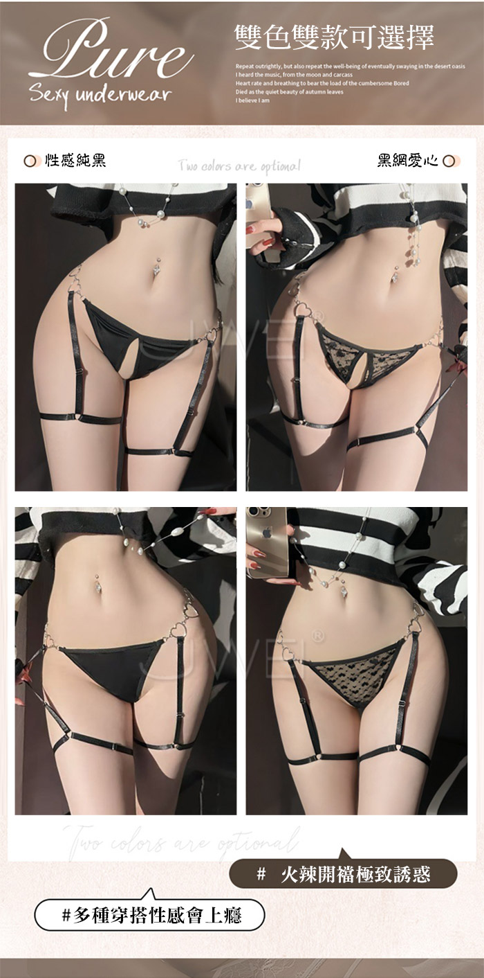 | 極夜誘惑.愛心鏈條綴腰吊帶低腰開襠褲【黑】
