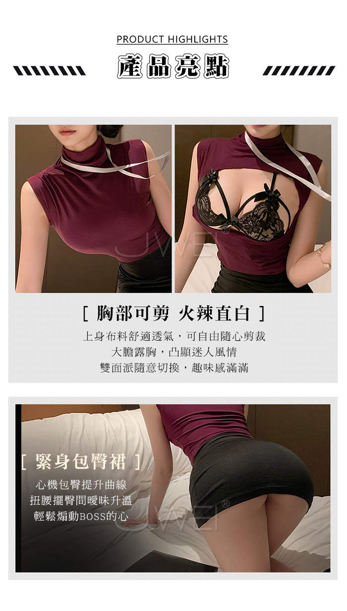 ►您現在的位置:首頁>情秘演繹.胸部可剪緊身包臀禁慾系OL秘書套裝-紫+黑【上衣+工牌+包臀裙+內褲】