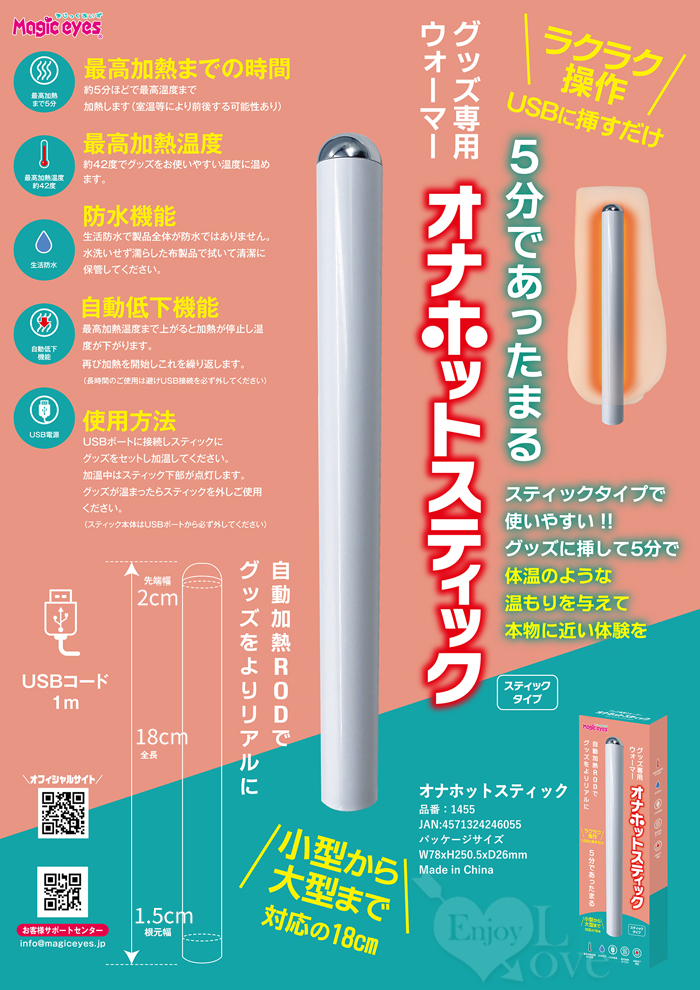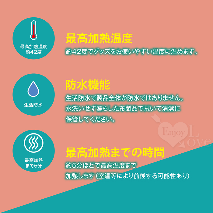 這款加熱器專為5分鐘即可加熱的物品而設計。 其18公分長的機身適用於小型和大型固定物品。 自動加熱功能會在達到最高溫度時停止加熱,讓您安心無虞。 充電線長度共有100公分(不含棒體),加熱棒防水,方便衛生收納。 ■日本原裝進口,品質優良。 ■產品尺寸:如圖所示。 日文簡述: 5分であったまるグッズ専用ウォーマー。 18cmの長い本体で小型から据え置きタイプの大型にも使用できます。 自動加熱で最高温度まで上がると加熱を停止してくれるので安心。 スティック部は生活防水の為、清潔に保管頂けます