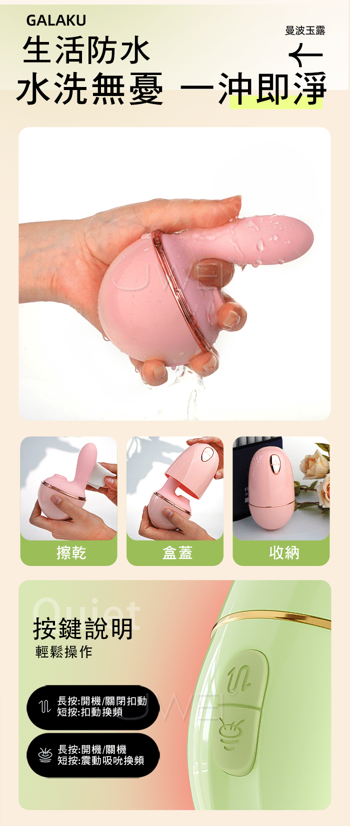 ►您現在的位置:首頁>GALAKU.曼波玉露 10頻靈指摳動+大口吮吸 雙潮喚起智能遠控變頻跳蛋【粉色】