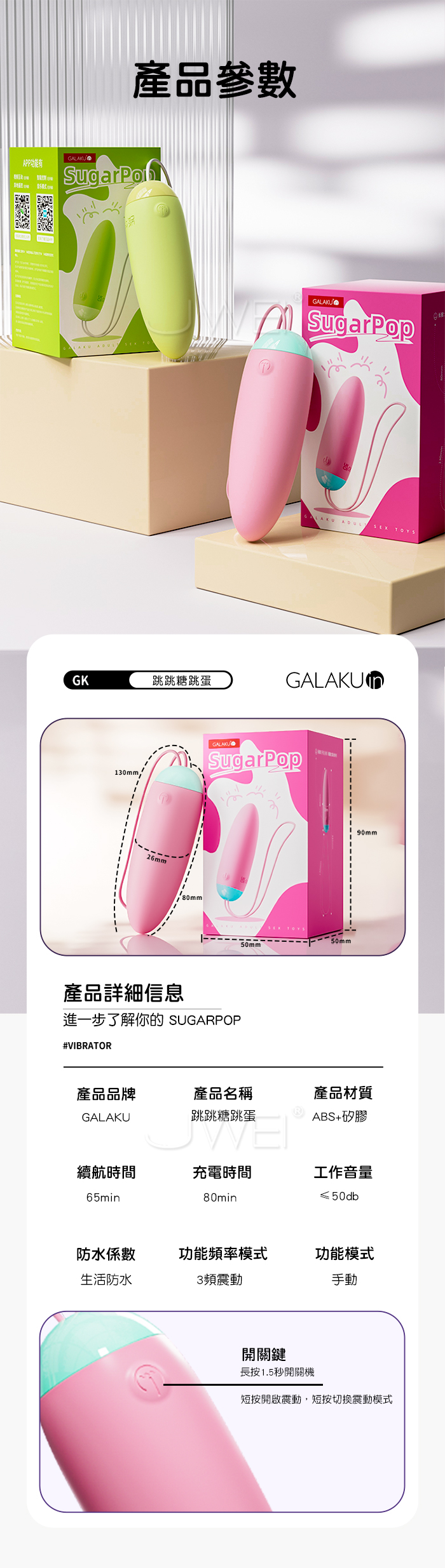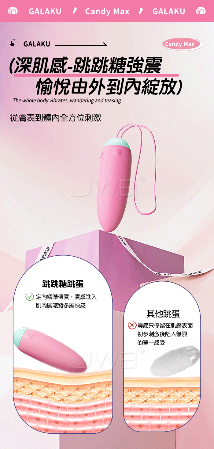 ►您現在的位置:首頁>GALAKU.跳跳糖 3頻爆跳穿透強震 深肌快感 加厚矽膠變頻跳蛋【基礎款-粉色】