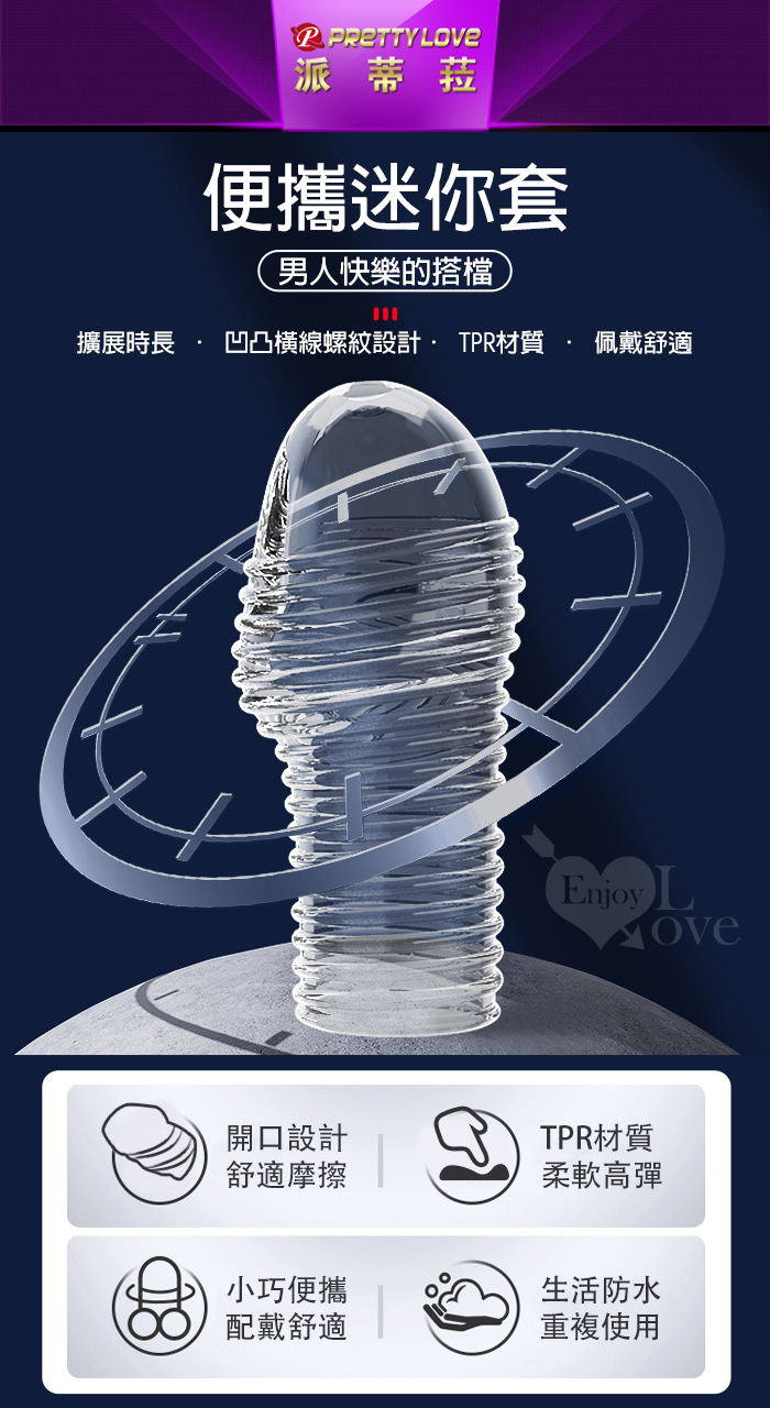 派蒂菈 ‧ HOYTT 霍伊特 凹凸橫線螺紋刺激/隱身/持久/武裝強化老二造型套 - 頭部出精口設計