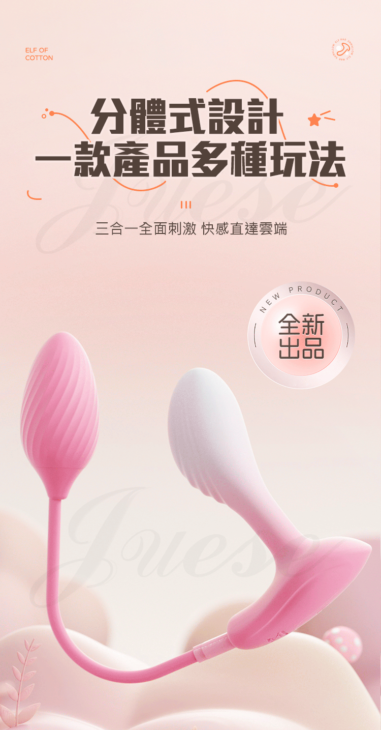 分體式設計,一款產品多種玩法,三合一全面刺激,快感直達雲端。十頻可調,搭載強勁電機,快感刺激深層敏感點。