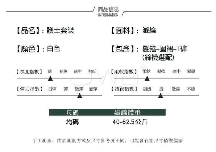 ►您現在的位置:首頁>誘慾診療.荷葉花邊吊帶圍裙綁帶美背私房護士誘惑套裝【髪箍+圍裙+T褲】