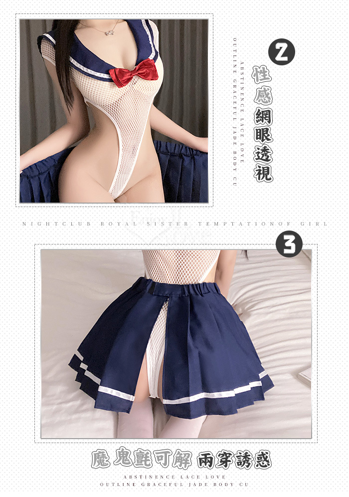 ►您現在的位置:首頁>學生角色扮演服!性感網眼透視高衩開襠連身衣 × 百褶裙甜魅二件組