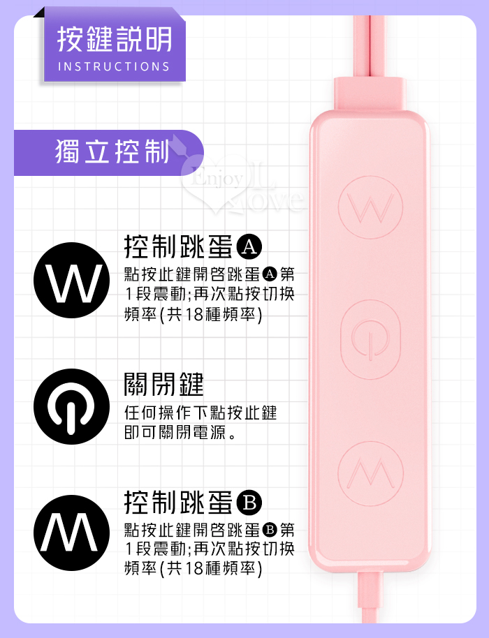 ►您現在的位置:首頁>ROSELEX 勞樂斯 ‧ 雙圓跳蛋 18頻調控強震入體雙跳蛋﹝內外刺激+USB直插供電+雙邊可獨立控制﹞淺粉