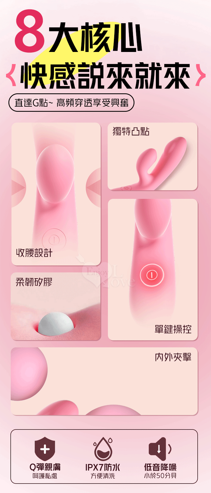 | JIUAI 失控G點棒 強震款 ‧ 8X8 強震+吸吮舌撩 雙重體驗穿戴G點按摩器 - 氣氛燈磁吸充電魔盒﹝櫻花粉﹞
