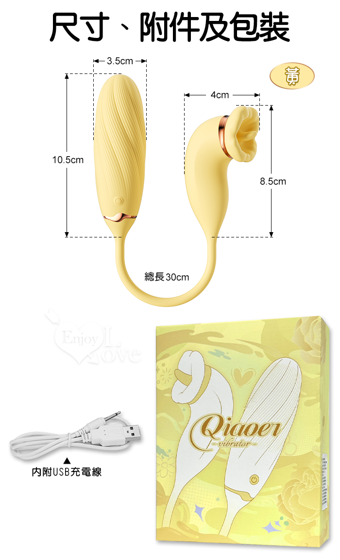 ROSELEX 俏兒 ‧ 魔舌蜜嘴狂撩+長跳蛋 舔震聯手雙組合按摩器﹝花樣玩法/10頻強震/內外同享潮吹/親膚矽膠﹞黄
