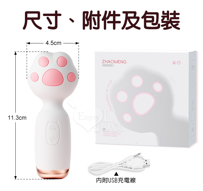 | ROSELEX 萌爪AV棒 ‧ 可愛小貓爪加溫震動棒-10頻震動陰蒂刺激調情自慰 - 白