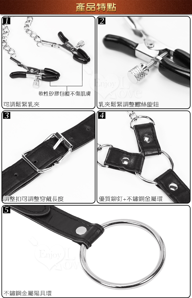 說明: 讓他顯得酷酷的另類裝飾! Y型的上端是可以咬住乳頭的金屬乳頭夾 (可以調鬆緊也有膠皮保護圈,以免傷害乳頭), 下方是一個套在陰囊根部(或者陰莖根部)的金屬環。 中間的連接是黑色真皮帶,可以調節鬆緊。 【注意事項】 ※SM用品屬於特殊情趣用品,需在雙方清醒自願的情況下使用, 該物品僅作為情趣用品使用,使用時應注意安全!!