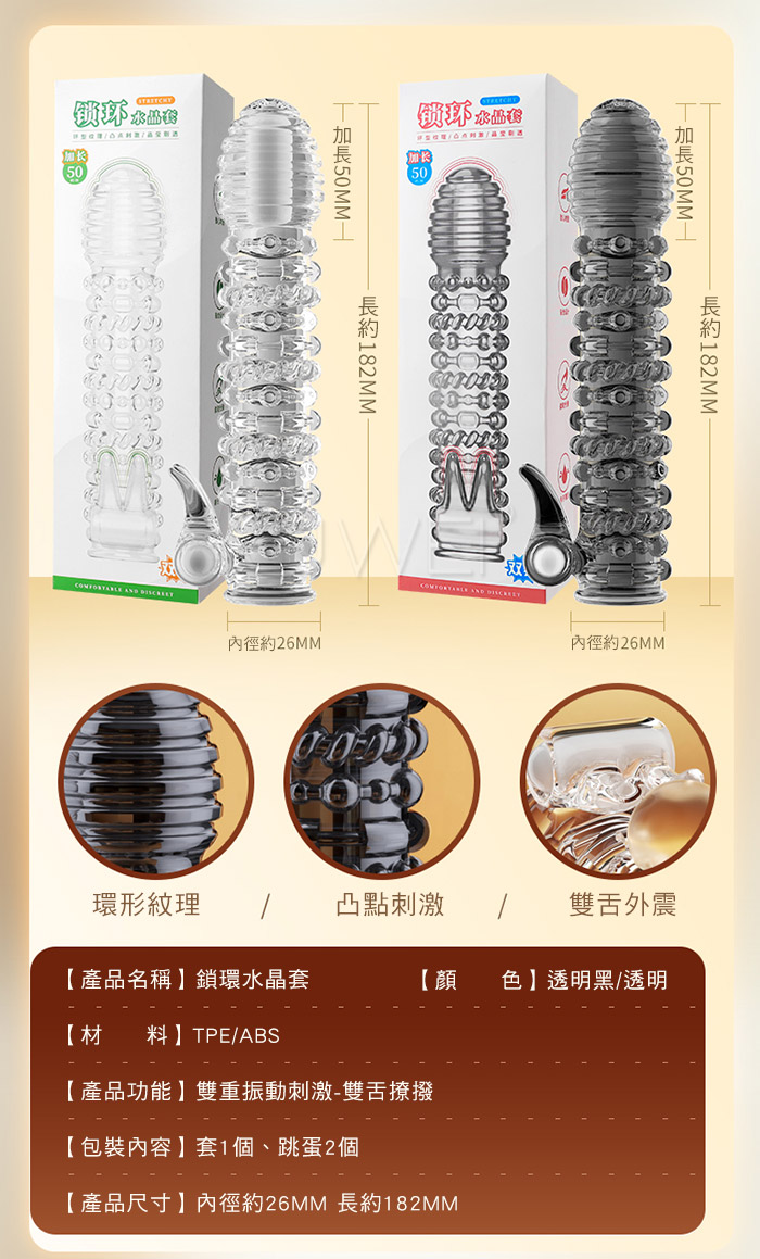 | 波浪.波浪顆粒紋理 凸起單頻震動刺激 加粗水晶老二套【透黑】